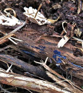 The final layer was the mulch that has been suppressing the grass along the border of the garden. This mulch is several months old, and in parts nearly decayed to soil. We surrounded the bed with wood and branches, and the sealed the edges with more mulch.