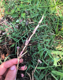 Bermuda grass spreads via sturdy stems, which can race along the surface of the soil or push through it. Seemingly undeterred by any depth or duration of darkness, the sharp white stem will tunnel along until it reaches sunlight. Unlike normal, polite weeds, pulling Bermuda grass reveals not a bunch of roots, but a bunch of stems leading deeper into the garden. The stems break only with force; ten minutes of pulling can raise blisters, even with gloves on. And the best part is, a single shard of stem can spawn an entirely new plant.