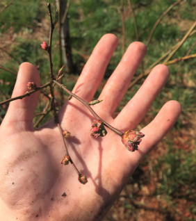Just as people know spring is coming when the weather warms, so do plants. That's why our plums raspberries, peaches, and blueberries are unfurling their flowers and leaves.